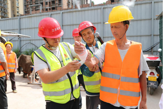 啟動儀式結(jié)束后,項目部工作人員迅速開展聯(lián)合應(yīng)急演練,模擬火災(zāi)、高處墜落等工地典型突發(fā)場景。演練中,現(xiàn)場示范滅火器的操作規(guī)范,講解使用要點,并組織人員進行實操訓練,確保人人掌握滅火技能;隨后開展急救包扎演示教學,切實提升人員應(yīng)急救護技能。